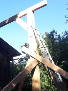- reprise de charpente dont remplacement de tous les chevrons et de certaines pannes